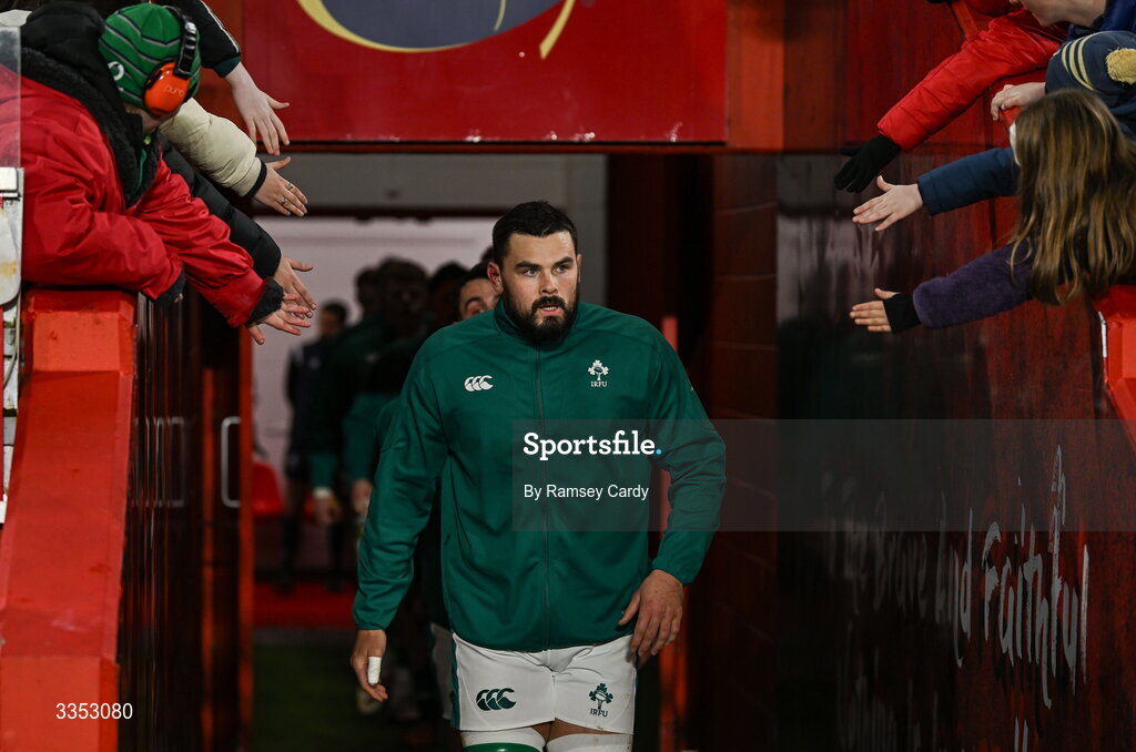 6 February 2026; Max Deegan of Ireland XV before the representative fixture rugby union match between Ireland XV and England A at Thomond Park in Limerick. Photo by Ramsey Cardy/Sportsfile