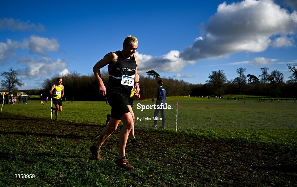 15 February 2026; Ian Egan of West Coast A.C., Galway, competes in the men's masters 6000m during the 123.ie National Intermediate, Masters & Juvenile B Cross Country Championships at the Sport Ireland National Cross Country Course in Abbottstown, Dublin. Photo by Tyler Miller/Sportsfile