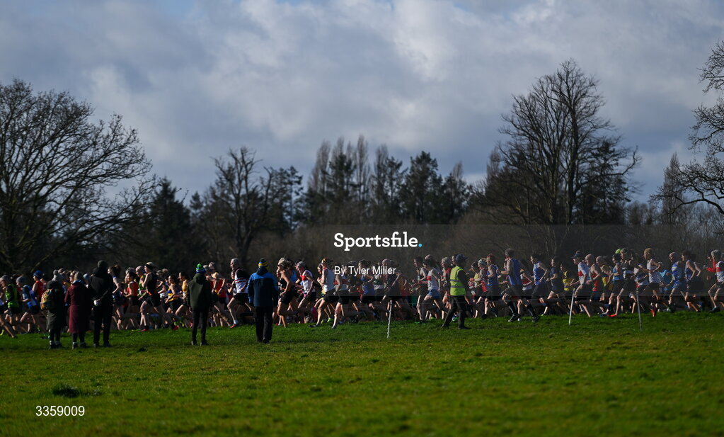 15 February 2026; A general view of the start of the women's masters and men's over 65 3000m during the 123.ie National Intermediate, Masters & Juvenile B Cross Country Championships at the Sport Ireland National Cross Country Course in Abbottstown, Dublin. Photo by Tyler Miller/Sportsfile