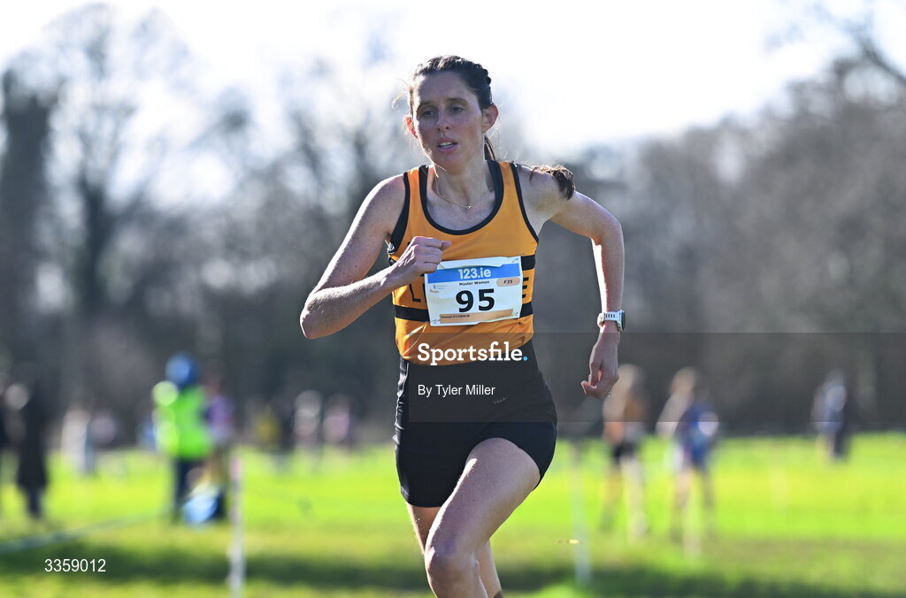 15 February 2026; Sinead O'Connor of Leevale A.C., Cork, competes in the women's masters 3000m during the 123.ie National Intermediate, Masters & Juvenile B Cross Country Championships at the Sport Ireland National Cross Country Course in Abbottstown, Dublin. Photo by Tyler Miller/Sportsfile
