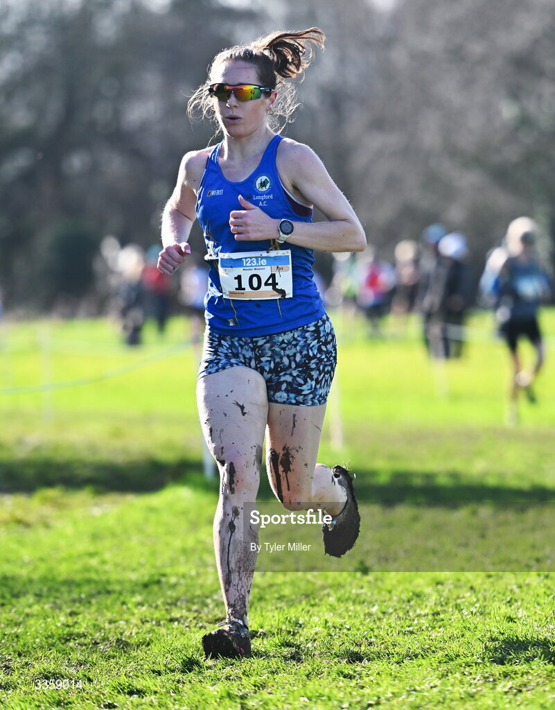 15 February 2026; Ashley Ryan of Longford A.C., Longford, competes in the women's masters 3000m during the 123.ie National Intermediate, Masters & Juvenile B Cross Country Championships at the Sport Ireland National Cross Country Course in Abbottstown, Dublin. Photo by Tyler Miller/Sportsfile