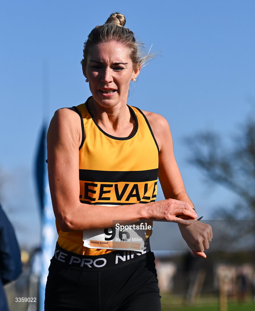 15 February 2026; Sharon Rynne of Leevale A.C., Cork, competes in the women's masters 3000m during the 123.ie National Intermediate, Masters & Juvenile B Cross Country Championships at the Sport Ireland National Cross Country Course in Abbottstown, Dublin. Photo by Tyler Miller/Sportsfile