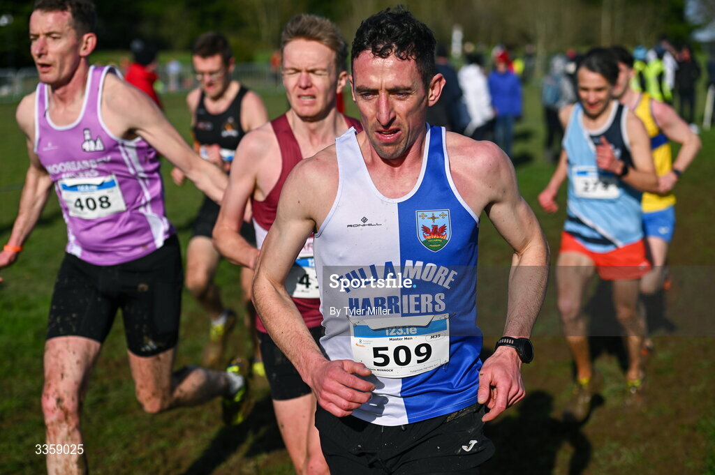 15 February 2026; Kevin Minnock of Tullamore Harriers A.C., Offaly, competes in the men's masters 6000m during the 123.ie National Intermediate, Masters & Juvenile B Cross Country Championships at the Sport Ireland National Cross Country Course in Abbottstown, Dublin. Photo by Tyler Miller/Sportsfile