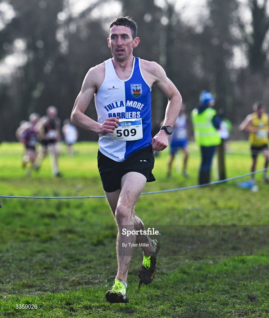 15 February 2026; Kevin Minnock of Tullamore Harriers A.C., Offaly, competes in the men's masters 6000m during the 123.ie National Intermediate, Masters & Juvenile B Cross Country Championships at the Sport Ireland National Cross Country Course in Abbottstown, Dublin. Photo by Tyler Miller/Sportsfile