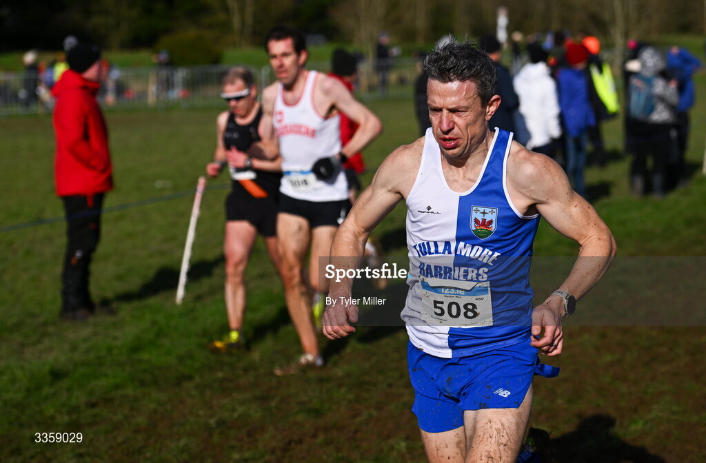 15 February 2026; Barry Minnock of Tullamore Harriers A.C., Offaly, competes in the men's masters 6000m during the 123.ie National Intermediate, Masters & Juvenile B Cross Country Championships at the Sport Ireland National Cross Country Course in Abbottstown, Dublin. Photo by Tyler Miller/Sportsfile
