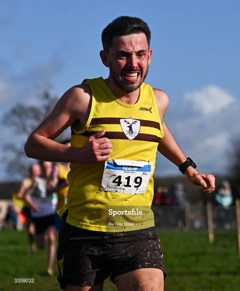 15 February 2026; Chris Hutchinson of NIMAA, Antrim, competes in the men's masters 6000m during the 123.ie National Intermediate, Masters & Juvenile B Cross Country Championships at the Sport Ireland National Cross Country Course in Abbottstown, Dublin. Photo by Tyler Miller/Sportsfile