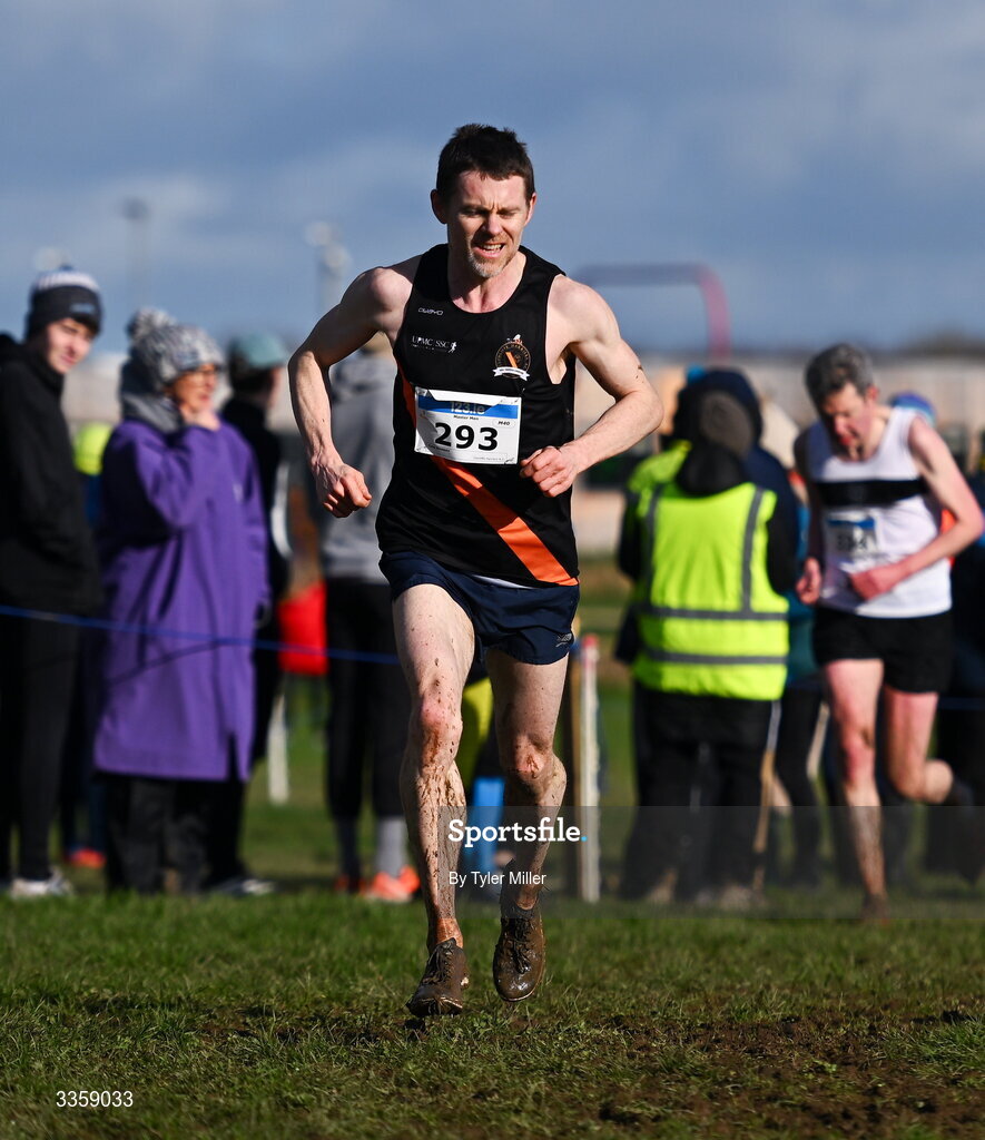 15 February 2026; Colm Rooney of Clonliffe Harriers A.C., Dublin, competes in the men's masters 6000m during the 123.ie National Intermediate, Masters & Juvenile B Cross Country Championships at the Sport Ireland National Cross Country Course in Abbottstown, Dublin. Photo by Tyler Miller/Sportsfile