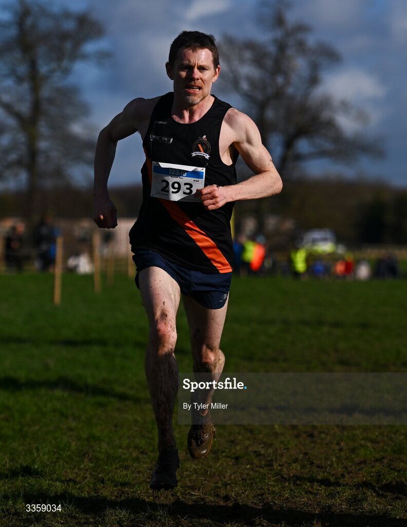 15 February 2026; Colm Rooney of Clonliffe Harriers A.C., Dublin, competes in the men's masters 6000m during the 123.ie National Intermediate, Masters & Juvenile B Cross Country Championships at the Sport Ireland National Cross Country Course in Abbottstown, Dublin. Photo by Tyler Miller/Sportsfile