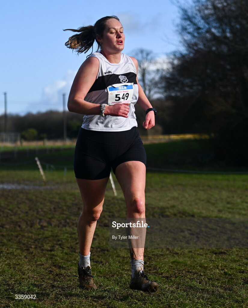 15 February 2026; Katherine Marsh of Donore Harriers A.C., Dublin, competes in the women's intermediate 4000m during the 123.ie National Intermediate, Masters & Juvenile B Cross Country Championships at the Sport Ireland National Cross Country Course in Abbottstown, Dublin. Photo by Tyler Miller/Sportsfile