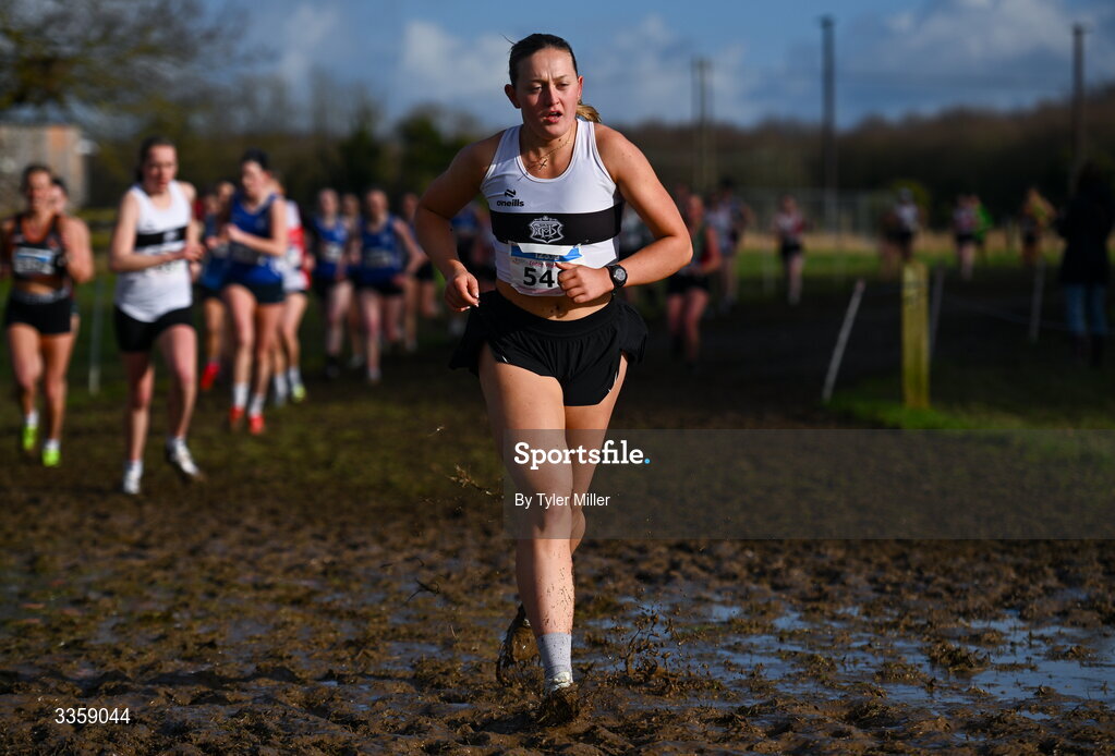 15 February 2026; Niamh Clarke of Donore Harriers A.C., Dublin, competes in the women's intermediate 4000m during the 123.ie National Intermediate, Masters & Juvenile B Cross Country Championships at the Sport Ireland National Cross Country Course in Abbottstown, Dublin. Photo by Tyler Miller/Sportsfile