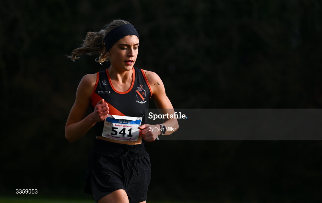 15 February 2026; Lauren McKiernan of Clonliffe Harriers A.C., Dublin, competes in the women's intermediate 4000m during the 123.ie National Intermediate, Masters & Juvenile B Cross Country Championships at the Sport Ireland National Cross Country Course in Abbottstown, Dublin. Photo by Tyler Miller/Sportsfile