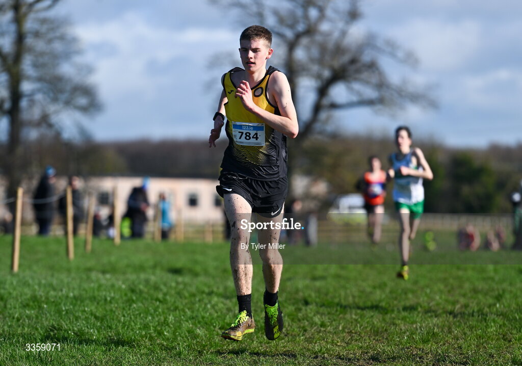 15 February 2026; Evan Costello of Dunleer A.C., Louth, competes in the boy's u17 3000m during the 123.ie National Intermediate, Masters & Juvenile B Cross Country Championships at the Sport Ireland National Cross Country Course in Abbottstown, Dublin. Photo by Tyler Miller/Sportsfile