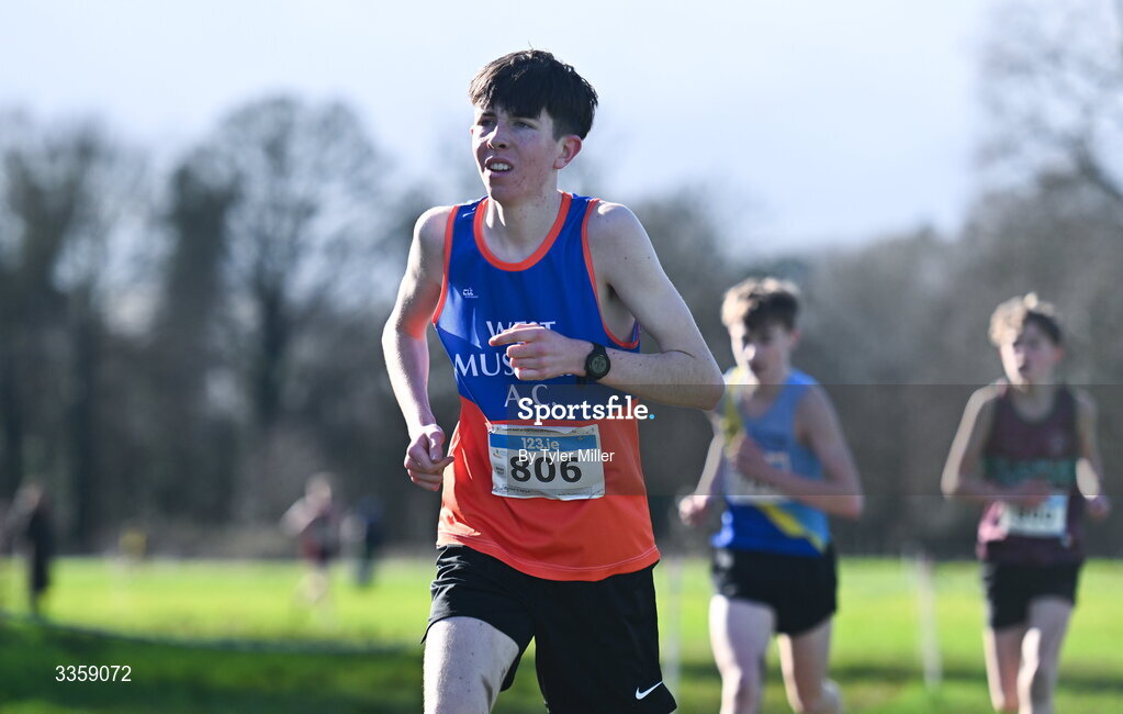 15 February 2026; Ronan O'Neill of West Muskerry A.C., Cork, competes in the boy's u17 3000m during the 123.ie National Intermediate, Masters & Juvenile B Cross Country Championships at the Sport Ireland National Cross Country Course in Abbottstown, Dublin. Photo by Tyler Miller/Sportsfile