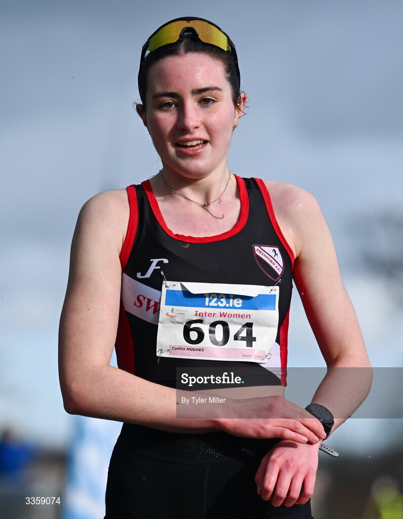 15 February 2026; Caitlin Hughes of Swinford A.C., Mayo, competes in the women's intermediate 4000m during the 123.ie National Intermediate, Masters & Juvenile B Cross Country Championships at the Sport Ireland National Cross Country Course in Abbottstown, Dublin. Photo by Tyler Miller/Sportsfile