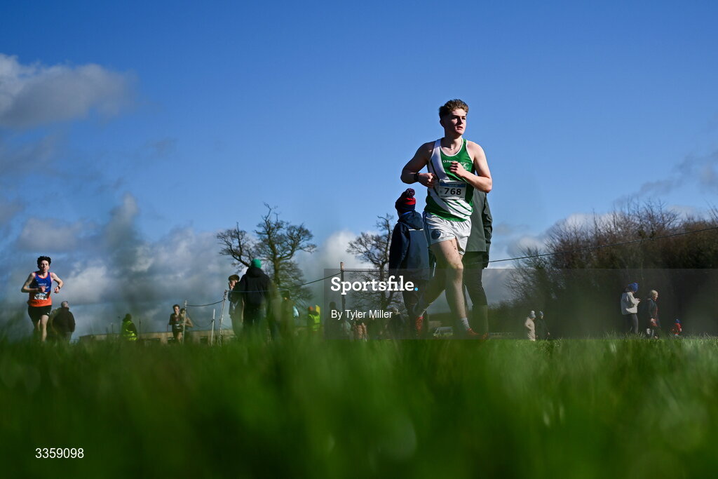 15 February 2026; Kyle Bolger of St. Joseph's A.C., Kilkenny, competes in the boy's u17 3000m during the 123.ie National Intermediate, Masters & Juvenile B Cross Country Championships at the Sport Ireland National Cross Country Course in Abbottstown, Dublin. Photo by Tyler Miller/Sportsfile