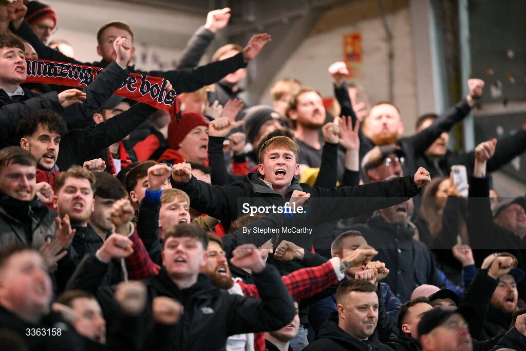 20 February 2026; Bohemians supporters during the SSE Airtricity Men's Premier Division match between Derry City and Bohemians at The Ryan McBride Brandywell Stadium in Derry. Photo by Stephen McCarthy/Sportsfile