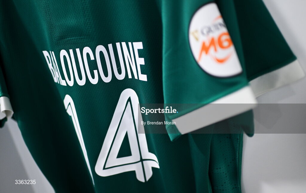 21 February 2026; The jersey of Robert Baloucoune in the Ireland dressingroom before the Guinness 6 Nations Rugby Championship match between England and Ireland at the Allianz Stadium in Twickenham, England. Photo by Brendan Moran/Sportsfile