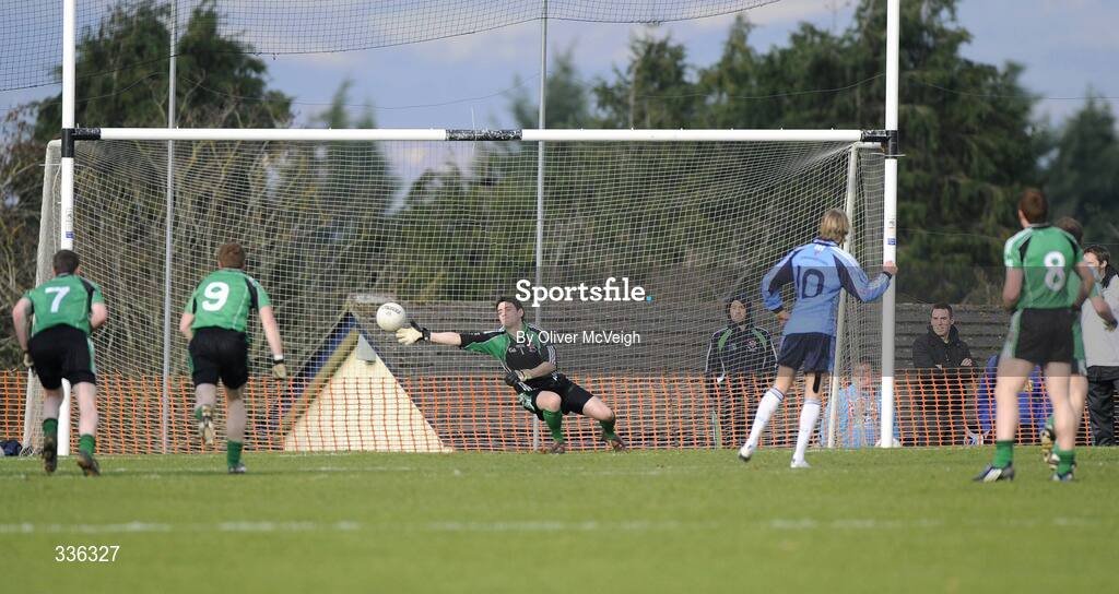 4 February 2009; Ciaran Donnelly, UUJ, scores a first half penalty past Fergal Murphy, Queen's University. Sigerson Cup, Queen's University v University of Ulster Jordanstown, The Dub, Belfast, Co. Antrim. Picture credit: Oliver McVeigh / SPORTSFILE