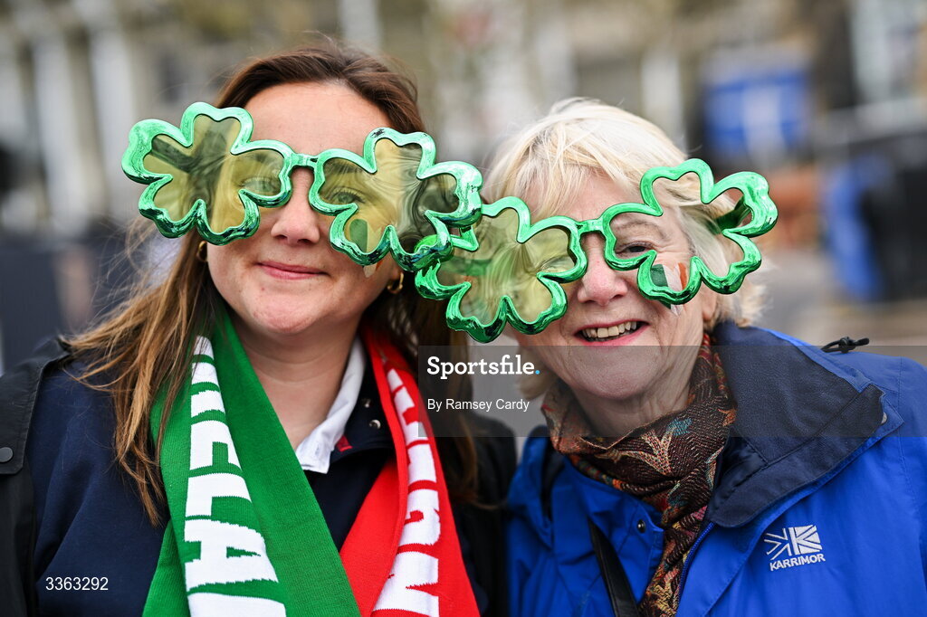21 February 2026; Ireland supporters Nella and Maggie Pinfield before the Guinness 6 Nations Rugby Championship match between England and Ireland at the Allianz Stadium in Twickenham, England. Photo by Ramsey Cardy/Sportsfile