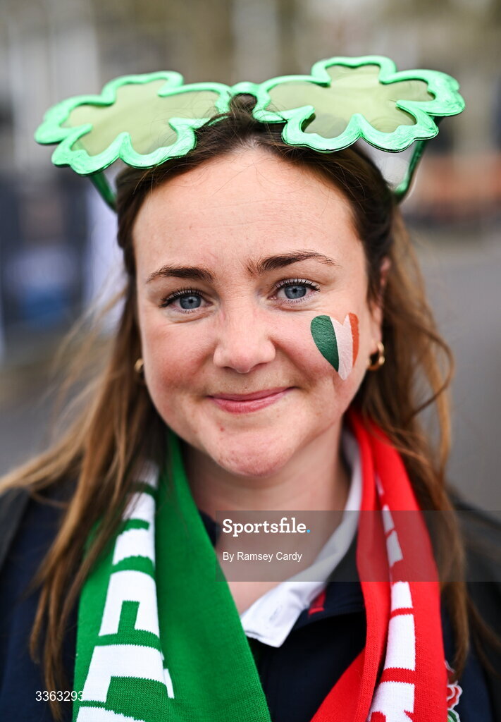 21 February 2026; Ireland supporter Nella Pinfield before the Guinness 6 Nations Rugby Championship match between England and Ireland at the Allianz Stadium in Twickenham, England. Photo by Ramsey Cardy/Sportsfile
