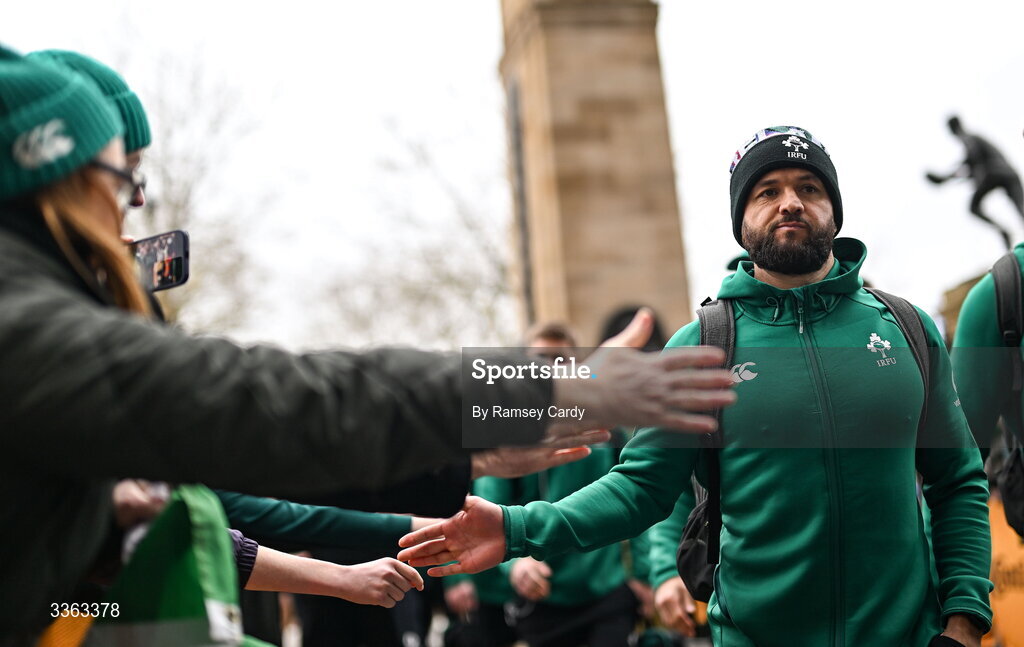 21 February 2026; Jamison Gibson-Park of Ireland arrives before the Guinness 6 Nations Rugby Championship match between England and Ireland at the Allianz Stadium in Twickenham, England. Photo by Ramsey Cardy/Sportsfile