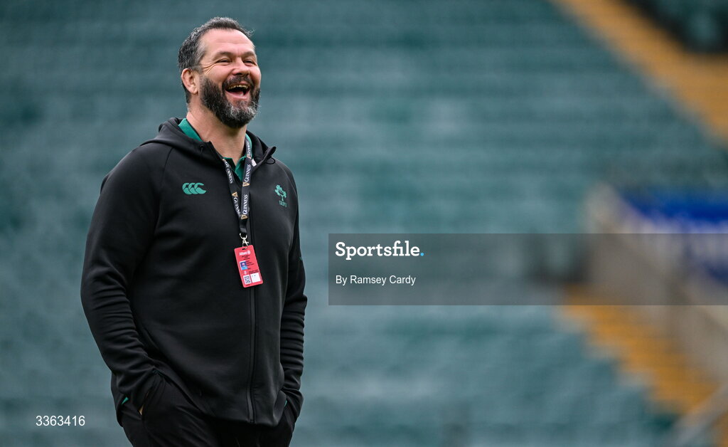 21 February 2026; Ireland head coach Andy Farrell before the Guinness 6 Nations Rugby Championship match between England and Ireland at the Allianz Stadium in Twickenham, England. Photo by Ramsey Cardy/Sportsfile