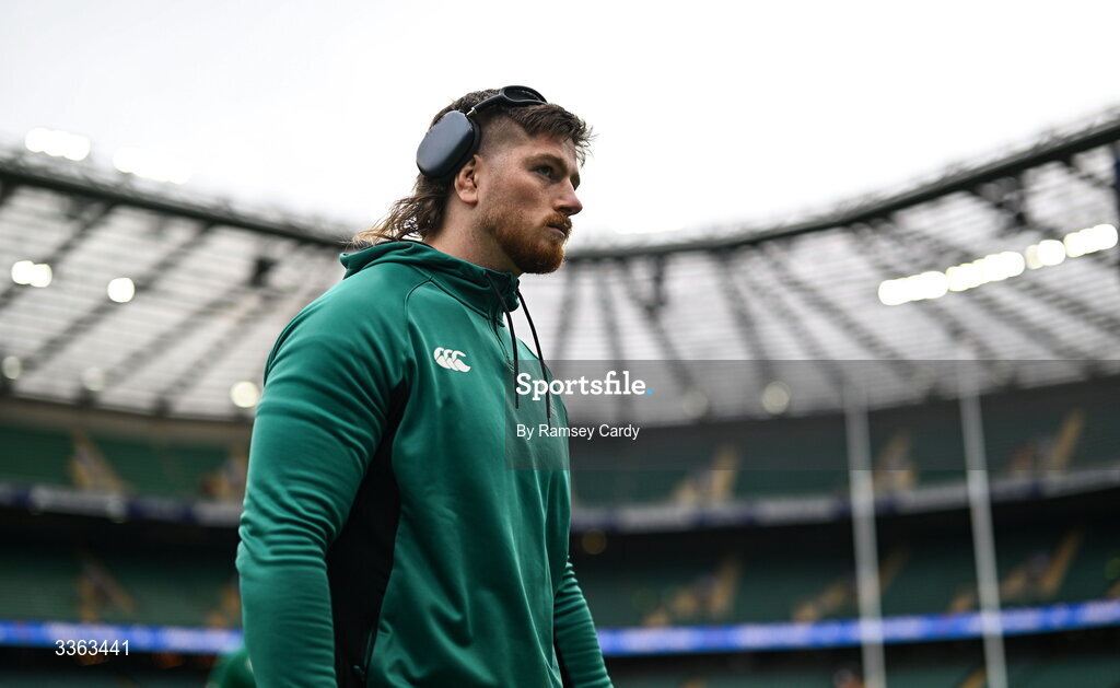 21 February 2026; Joe McCarthy of Ireland before the Guinness 6 Nations Rugby Championship match between England and Ireland at the Allianz Stadium in Twickenham, England. Photo by Ramsey Cardy/Sportsfile