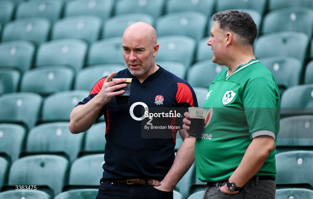 21 February 2026; England and Ireland supporters before the Guinness 6 Nations Rugby Championship match between England and Ireland at the Allianz Stadium in Twickenham, England. Photo by Brendan Moran/Sportsfile
