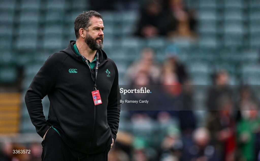 21 February 2026; Ireland head coach Andy Farrell before the Guinness 6 Nations Rugby Championship match between England and Ireland at the Allianz Stadium in Twickenham, England. Photo by Ramsey Cardy/Sportsfile
