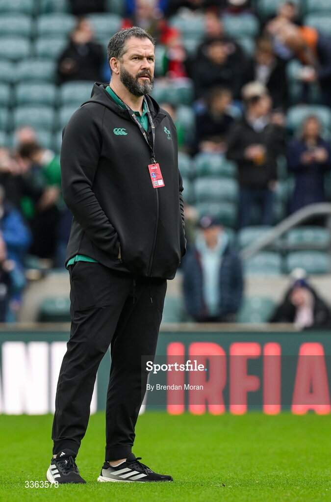 21 February 2026; Ireland head coach Andy Farrell before the Guinness 6 Nations Rugby Championship match between England and Ireland at the Allianz Stadium in Twickenham, England. Photo by Brendan Moran/Sportsfile
