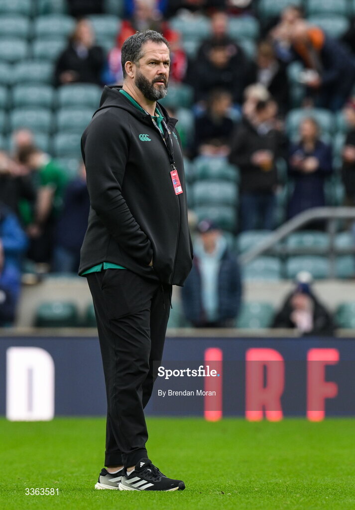 21 February 2026; Ireland head coach Andy Farrell before the Guinness 6 Nations Rugby Championship match between England and Ireland at the Allianz Stadium in Twickenham, England. Photo by Brendan Moran/Sportsfile