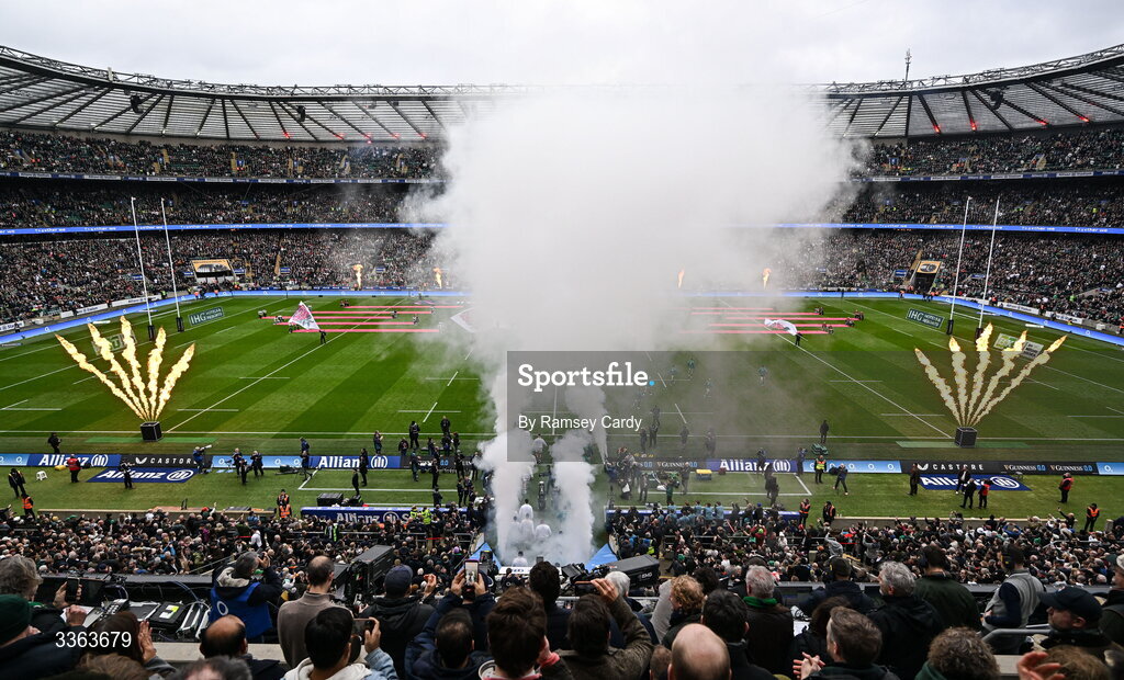 21 February 2026; A general view inside the stadium as the players and officials walk out before the Guinness 6 Nations Rugby Championship match between England and Ireland at the Allianz Stadium in Twickenham, England. Photo by Ramsey Cardy/Sportsfile