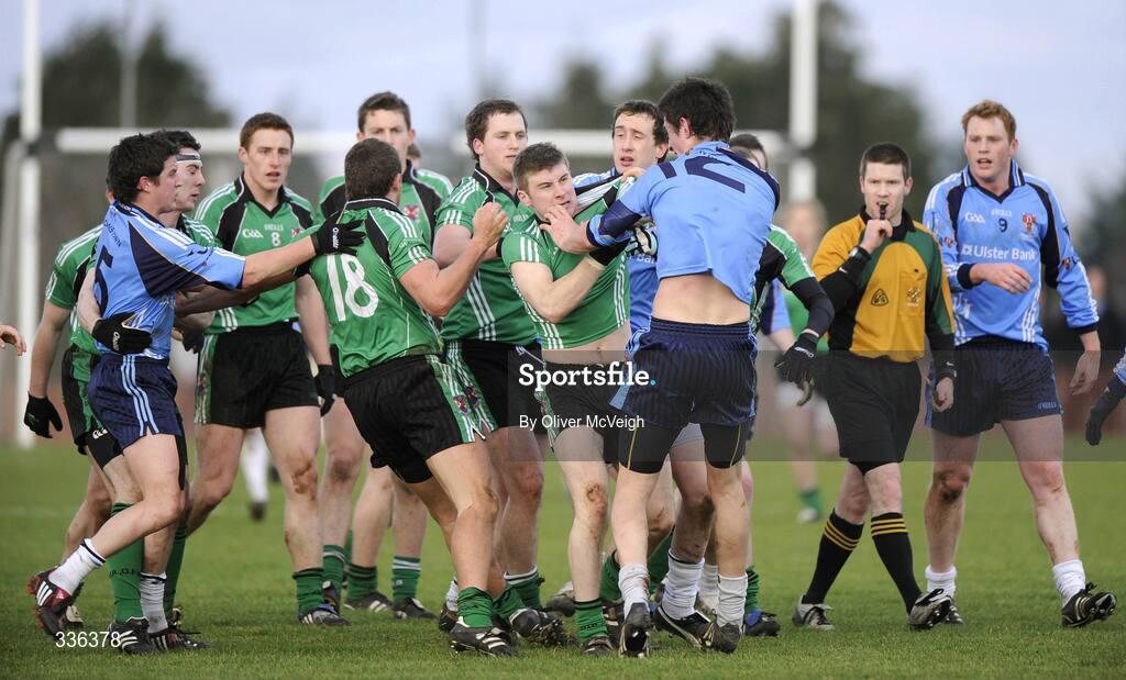 4 February 2009; Luke Howard, Queen's University involveded in a tussle with Niall McKeever, UUJ. Sigerson Cup, Queen's University v University of Ulster Jordanstown, The Dub, Belfast. Picture credit: Oliver McVeigh / SPORTSFILE