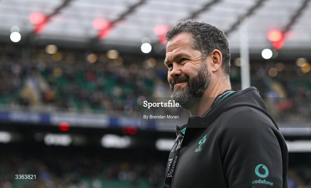 21 February 2026; Ireland head coach Andy Farrell before the Guinness 6 Nations Rugby Championship match between England and Ireland at the Allianz Stadium in Twickenham, England. Photo by Brendan Moran/Sportsfile