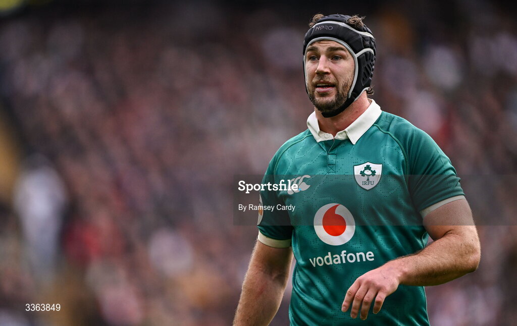21 February 2026; Ireland captain Caelan Doris during the Guinness 6 Nations Rugby Championship match between England and Ireland at the Allianz Stadium in Twickenham, England. Photo by Ramsey Cardy/Sportsfile