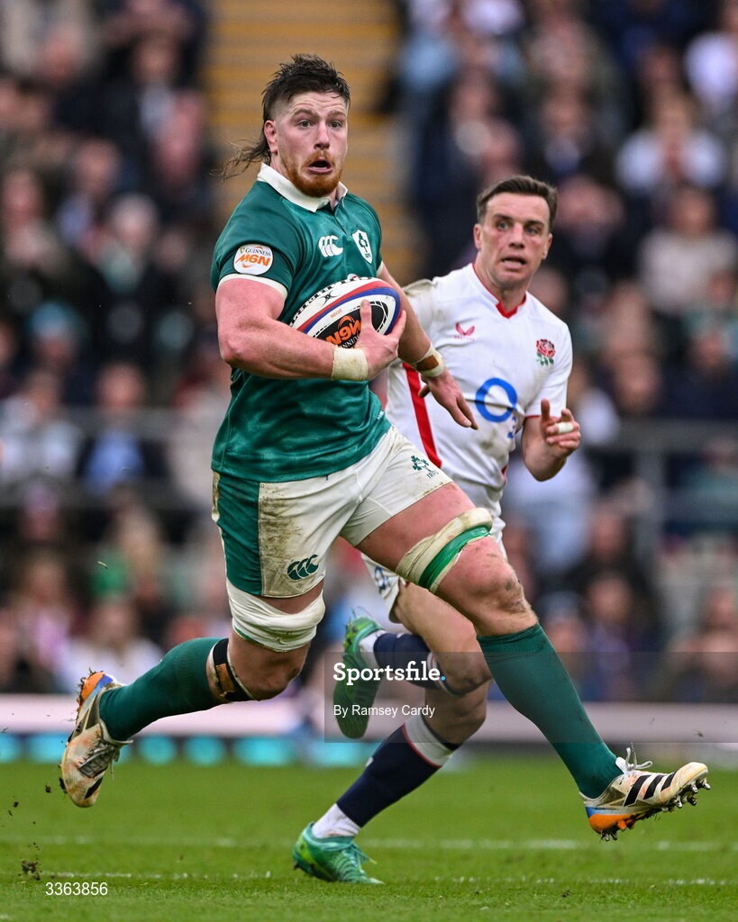 21 February 2026; Joe McCarthy of Ireland during the Guinness 6 Nations Rugby Championship match between England and Ireland at the Allianz Stadium in Twickenham, England. Photo by Ramsey Cardy/Sportsfile