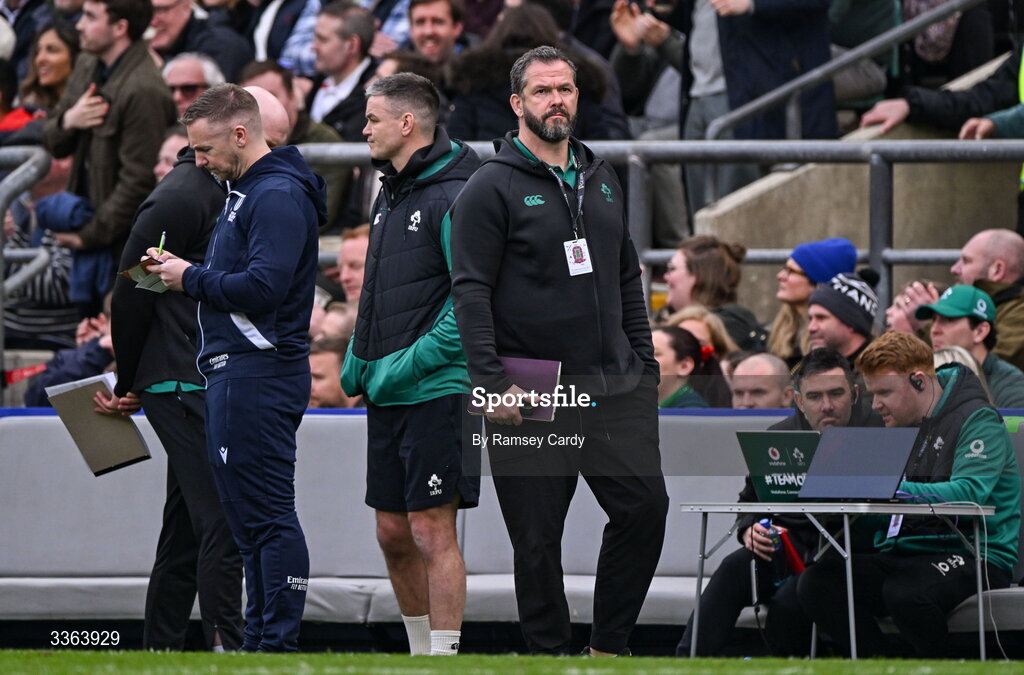 21 February 2026; Ireland head coach Andy Farrell watches from the touchline, as England score a try, not pictured, during the Guinness 6 Nations Rugby Championship match between England and Ireland at the Allianz Stadium in Twickenham, England. Photo by Ramsey Cardy/Sportsfile