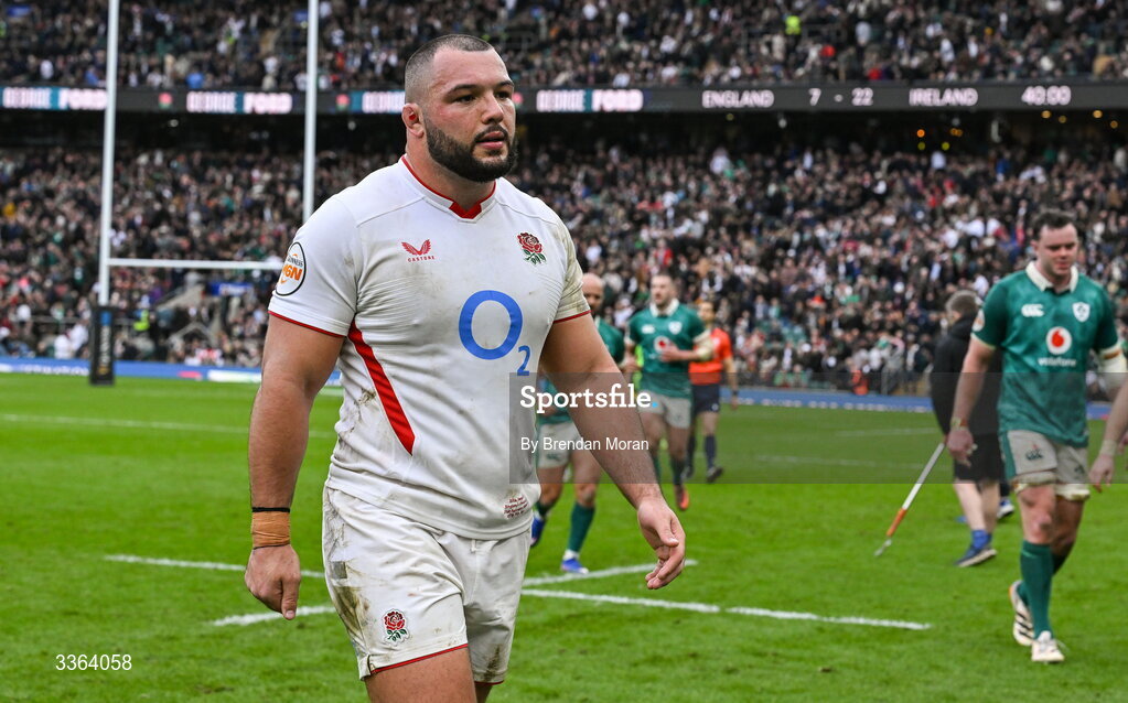 21 February 2026; Ellis Genge of England leaves the pitch at half-time during the Guinness 6 Nations Rugby Championship match between England and Ireland at the Allianz Stadium in Twickenham, England. Photo by Brendan Moran/Sportsfile