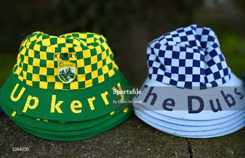 21 February 2026; Kerry and Dublin hats are seen on sale outside the ground before the Allianz Football League Division 1 match between Dublin and Kerry at Croke Park in Dublin. Photo by David Fitzgerald/Sportsfile
