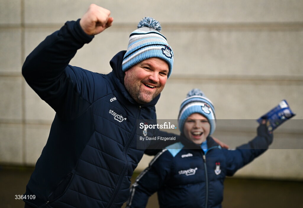 21 February 2026; Dublin supporters arrive before the Allianz Football League Division 1 match between Dublin and Kerry at Croke Park in Dublin. Photo by David Fitzgerald/Sportsfile