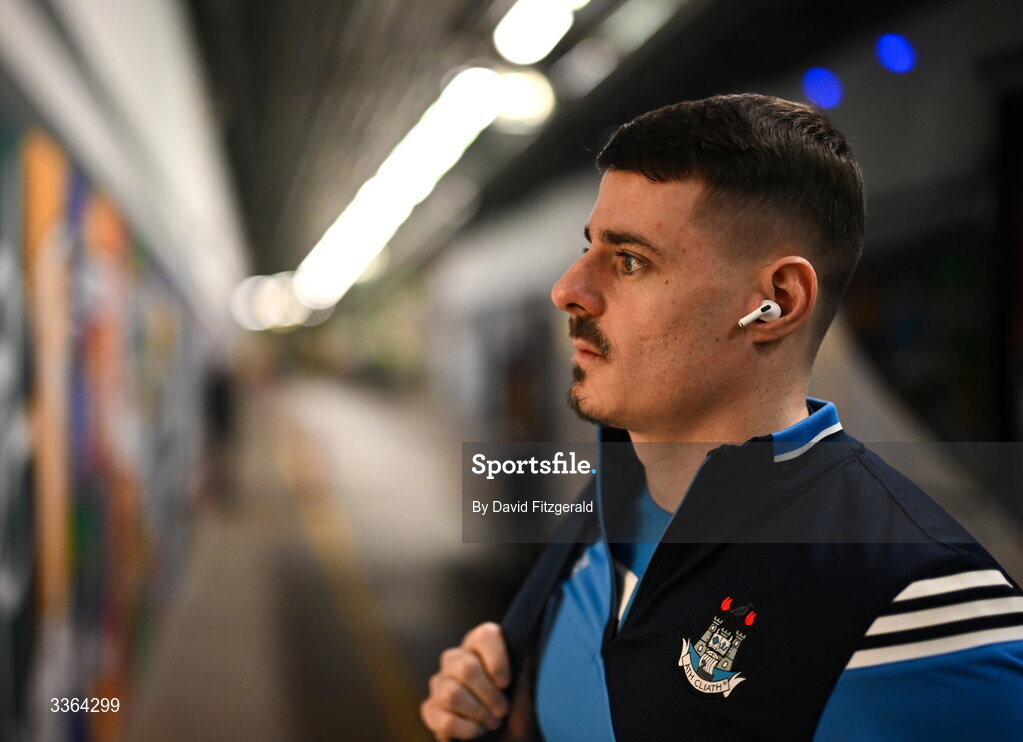 21 February 2026; Brian Howard of Dublin arrives before the Allianz Football League Division 1 match between Dublin and Kerry at Croke Park in Dublin. Photo by David Fitzgerald/Sportsfile