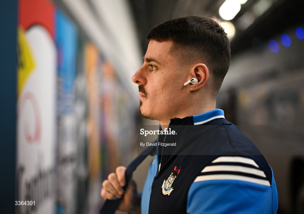 21 February 2026; Brian Howard of Dublin arrives before the Allianz Football League Division 1 match between Dublin and Kerry at Croke Park in Dublin. Photo by David Fitzgerald/Sportsfile