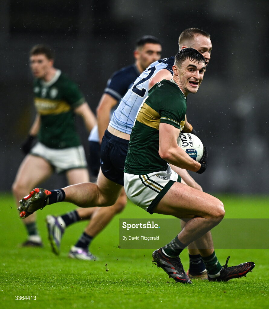21 February 2026; Seán O’Shea of Kerry in action against Peadair Ó Cofaigh Byrne of Dublin during the Allianz Football League Division 1 match between Dublin and Kerry at Croke Park in Dublin. Photo by David Fitzgerald/Sportsfile