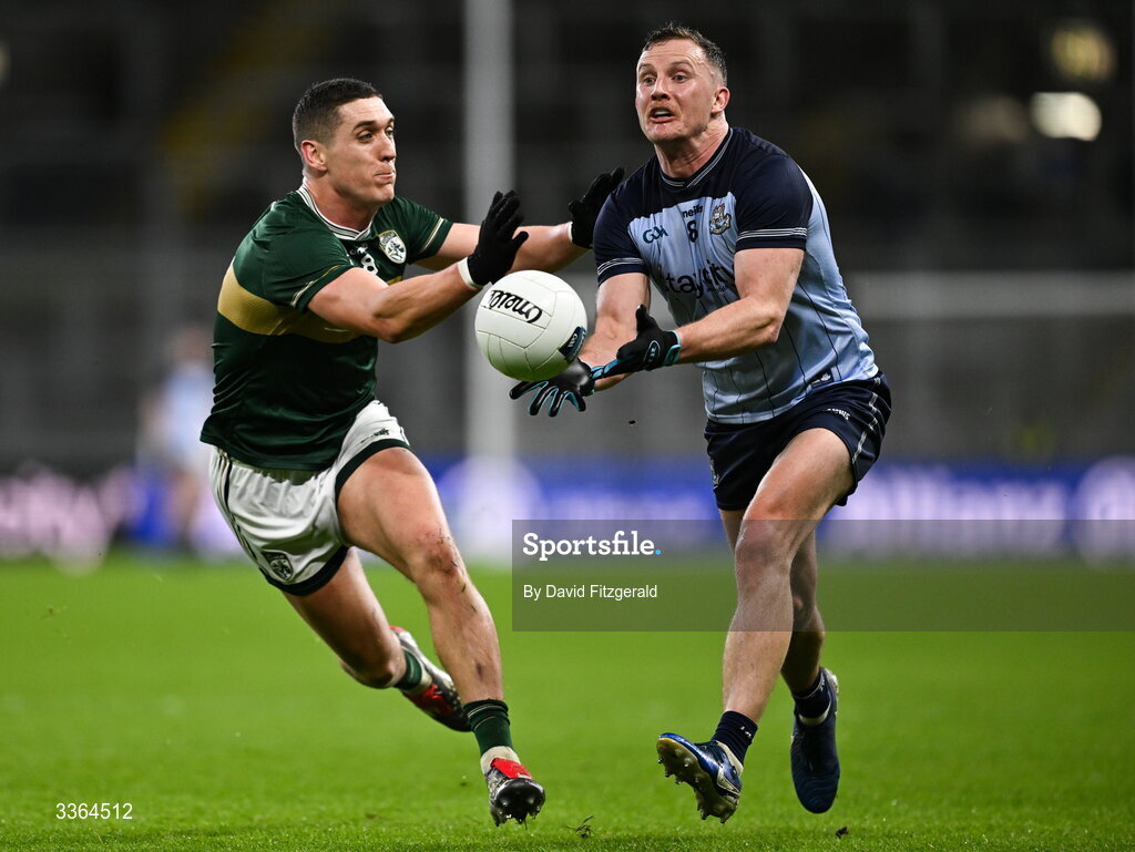 21 February 2026; Ciarán Kilkenny of Dublin in action against Joe O’Connor of Kerry during the Allianz Football League Division 1 match between Dublin and Kerry at Croke Park in Dublin. Photo by David Fitzgerald/Sportsfile