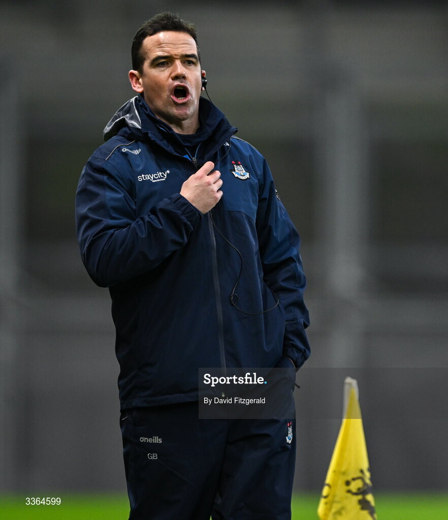 21 February 2026; Dublin manager Ger Brennan during the Allianz Football League Division 1 match between Dublin and Kerry at Croke Park in Dublin. Photo by David Fitzgerald/Sportsfile