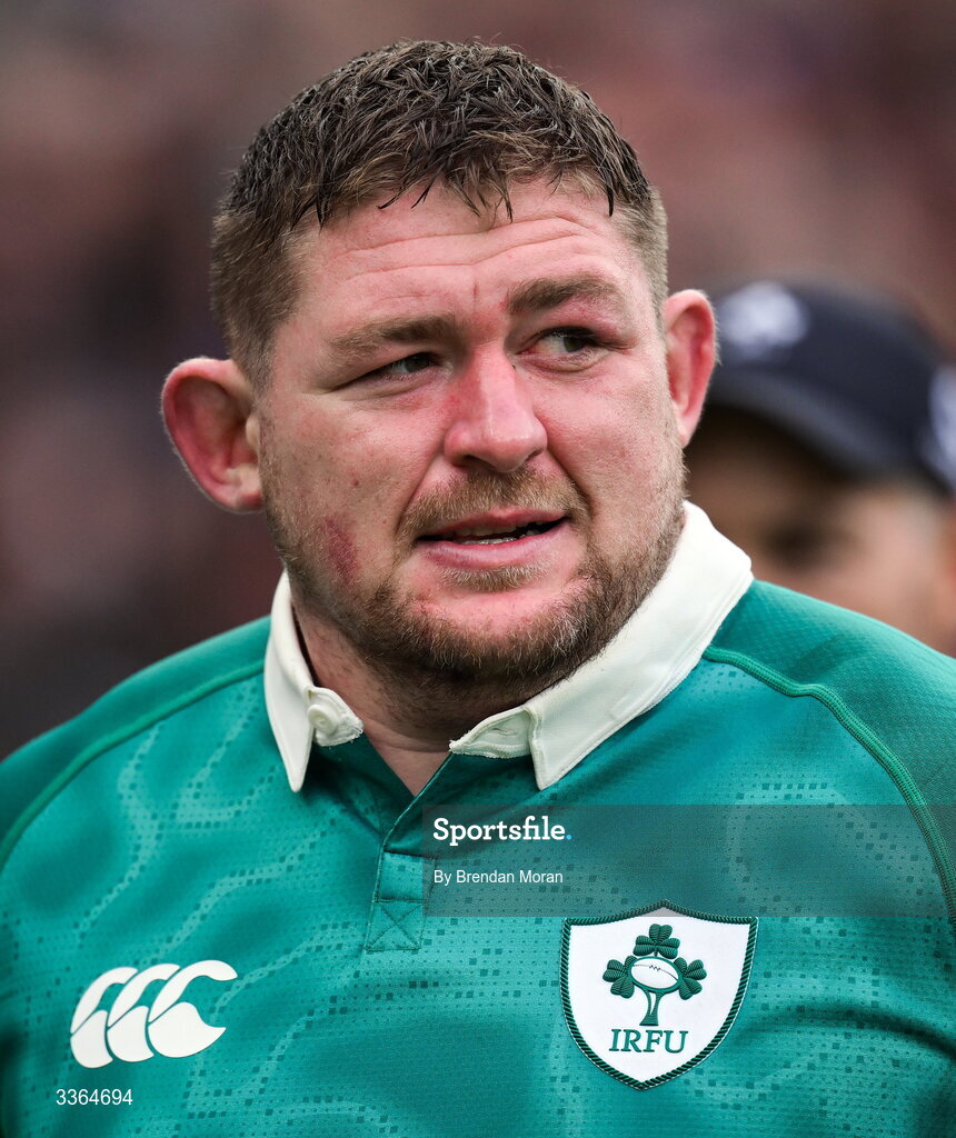 21 February 2026; Tadhg Furlong of Ireland watches the final moments of the Guinness 6 Nations Rugby Championship match between England and Ireland at the Allianz Stadium in Twickenham, England. Photo by Brendan Moran/Sportsfile