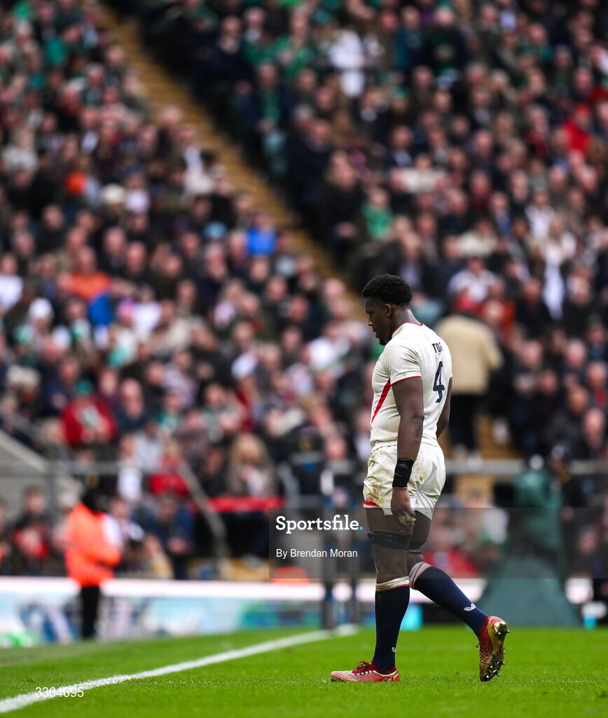 21 February 2026; England captain Maro Itoje leaves the pitch upon being substituted during the Guinness 6 Nations Rugby Championship match between England and Ireland at the Allianz Stadium in Twickenham, England. Photo by Brendan Moran/Sportsfile