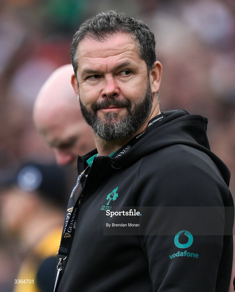 21 February 2026; Ireland head coach Andy Farrell on the sideline just before the half-time whistle during the Guinness 6 Nations Rugby Championship match between England and Ireland at the Allianz Stadium in Twickenham, England. Photo by Brendan Moran/Sportsfile