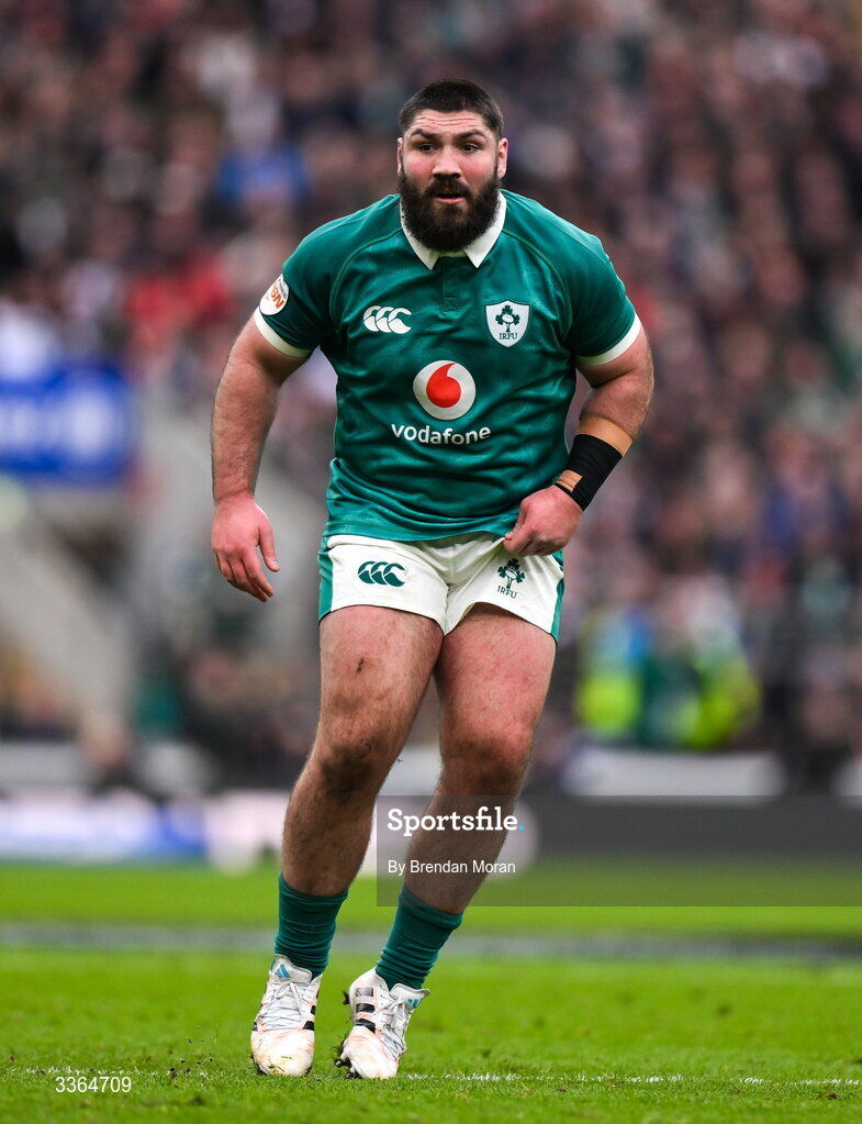 21 February 2026; Tom O’Toole of Ireland during the Guinness 6 Nations Rugby Championship match between England and Ireland at the Allianz Stadium in Twickenham, England. Photo by Brendan Moran/Sportsfile