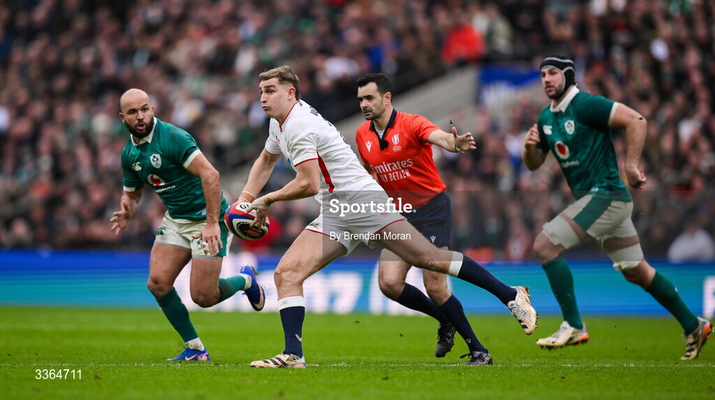 21 February 2026; Jack van Poortvliet of England during the Guinness 6 Nations Rugby Championship match between England and Ireland at the Allianz Stadium in Twickenham, England. Photo by Brendan Moran/Sportsfile